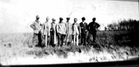 Unidentified men standing by drainage ditch. Could possibly be connected with the photo RCH-751 that shows men standing by a large piece of equipment and a pool of water in a ditch.