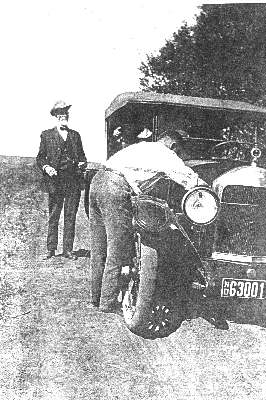 Peter McKercher supervising car repairs. Probably in Stirum, North Dakota.