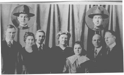 L-R: William C., Madelaine, Lawrence F., Madelaine Young, Connie, Henry C., and Howard Eder. L-R inserts: Walter Eder and Everett E. Eder.